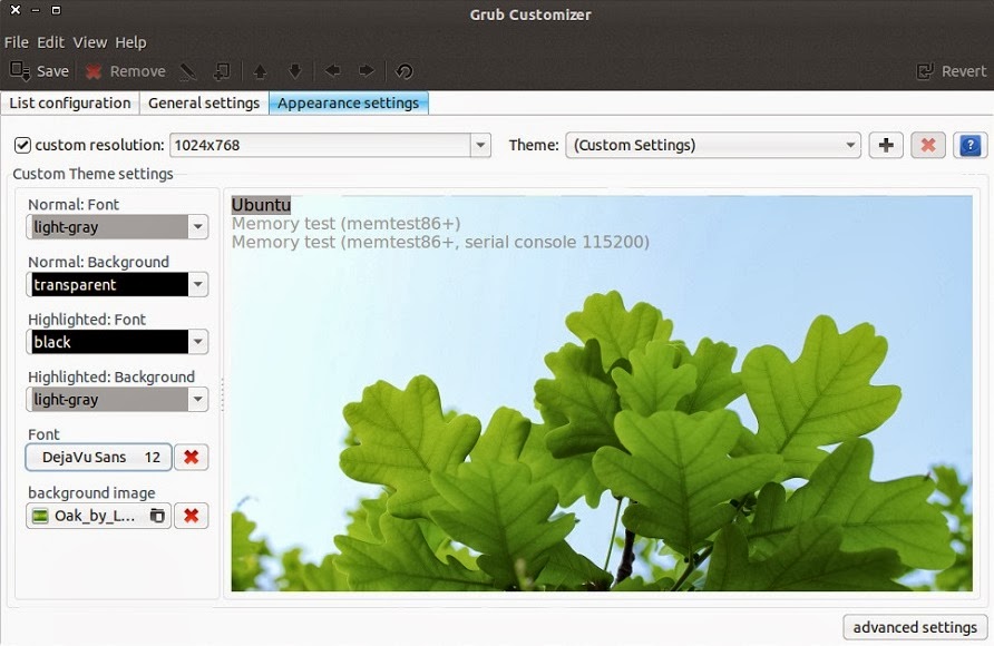 Grub background is quite interesting feature offered by Grub-Customizer. There are options to set it manually but with this tool you can easily add any image to your grub, can set custom resolution and also font customization is available.